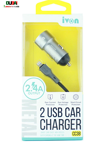 فندکی اتومبیل تایپ سی فست دو پورت / Auto Charger IVON CC38 2 USB FAST