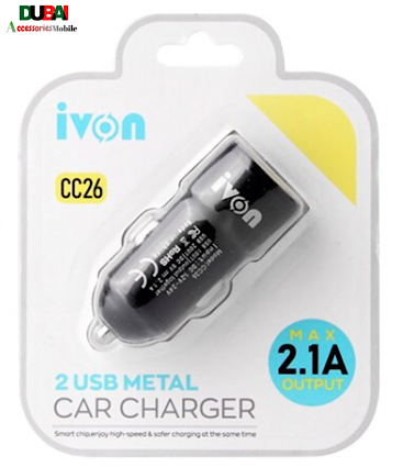 شارژ فندکی اتومبیل دو پورت خروجی Car Charger ivon cc26 2.1A 2USB